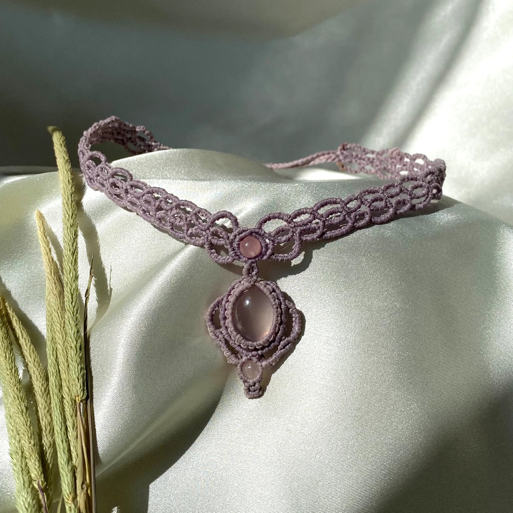 Makrome Pembe Kuvars Choker